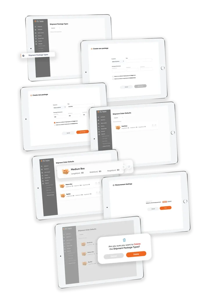 Managing shipments efficiently starts with the right shipping package type. In It’s Here WMS, you don’t just rely on standard box sizes—you can create, customize, and manage your own custom shipping packages designed to fit your products and customers’ needs.